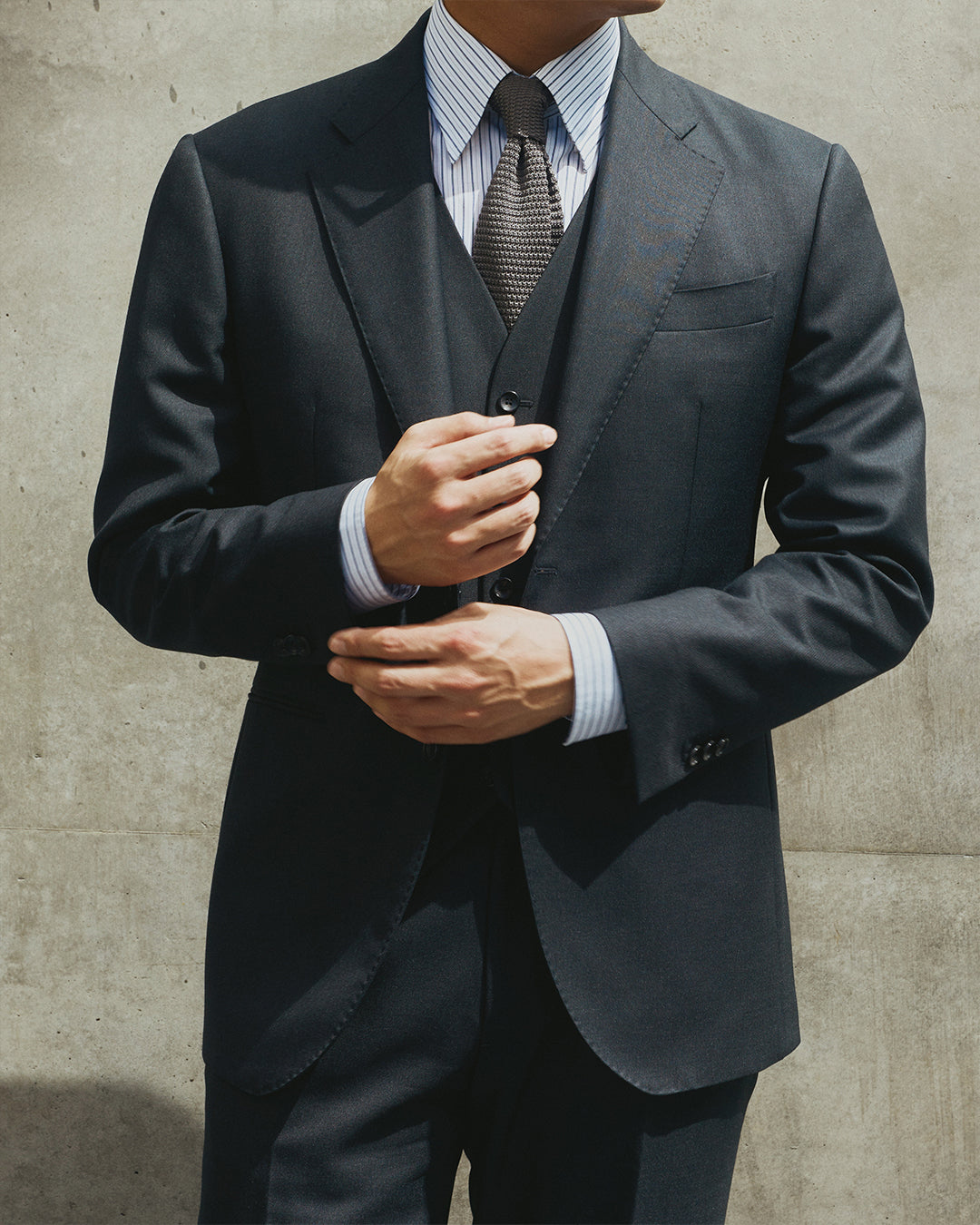첫 수트를 떠올릴 때 우리는 보통 ‘네이비일까, 차콜일까’부터 고민합니다.